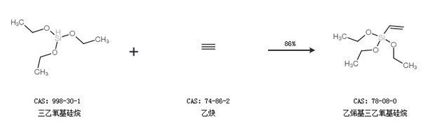 2.通过三乙氧基硅烷和乙炔合成乙烯基三乙氧基硅烷,收率约86%;