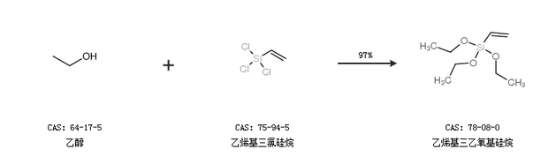 1.通过乙醇和乙烯基三氯硅烷合成乙烯基三乙氧基硅烷,收率约97%;