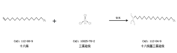 2.通过十八烯和三氯硅烷合成十八烷基三氯硅烷,收率约91%;