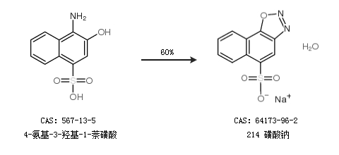 1.通过4-氨基-3-羟基-1-萘磺酸合成214 磺酸钠,收率约60%;