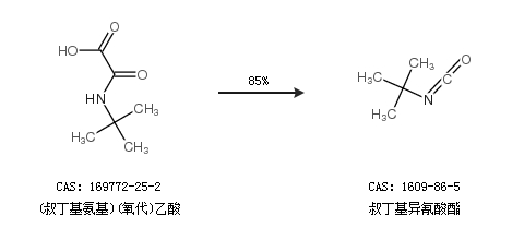 1.通过(叔丁基氨基)(氧代)乙酸合成叔丁基异氰酸酯,收率约85%;