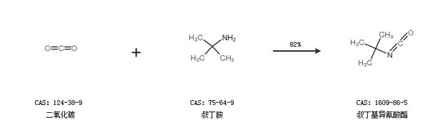 2.通过二氧化碳和叔丁胺合成叔丁基异氰酸酯,收率约82%;