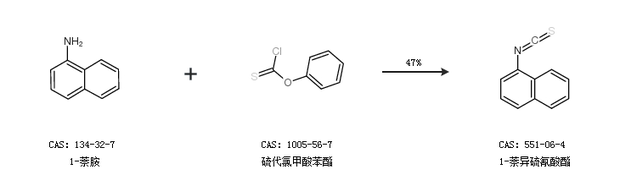 2.通过1-萘胺和硫代氯甲酸苯酯合成1-萘异硫氰酸酯,收率约47%;