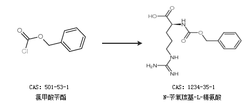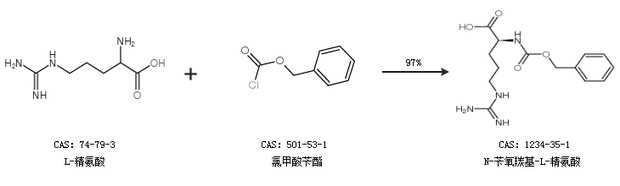 1.通过L-精氨酸和氯甲酸苄酯合成N-苄氧羰基-L-精氨酸,收率约97%;