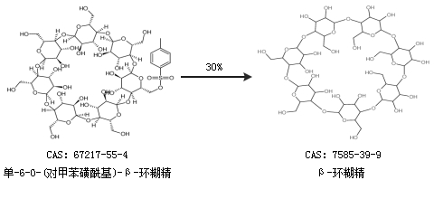 2.通过单-6-O-(对甲苯磺酰基)-β-环糊精合成β-环糊精,收率约30%;