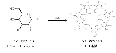 1.通过1-Fluoro-1-deoxy-α-D-glucose合成β-环糊精,收率约36%;