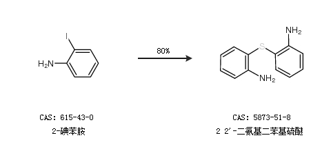 2.通过2-碘苯胺合成2 2''-二氨基二苯基硫醚,收率约80%;