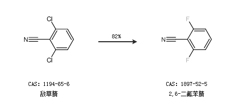 1.通过敌草腈合成2,6-二氟苯腈,收率约82%;