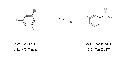 2.通过1-溴-3,5-二氟苯合成3,5-二氟苯硼酸,收率约75%;
