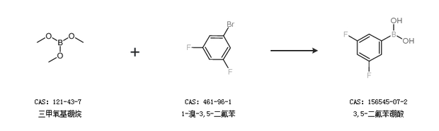1.通过三甲氧基硼烷和1-溴-3,5-二氟苯合成3,5-二氟苯硼酸