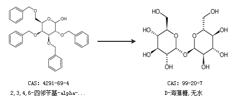 1.通过2,3,4,6-四邻苄基-alpha-d-吡喃葡萄糖合成D-海藻糖,无水