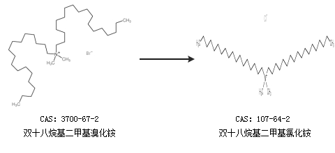 1.通过双十八烷基二甲基溴化铵合成双十八烷基二甲基氯化铵