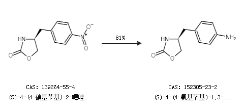 1.通过(S)-4-(4-硝基苄基)-2-噁唑烷酮合成(S)-4-(4-氨基苄基)-1,3-噁唑烷-2-酮,收率约81%;