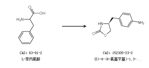 2.通过L-苯丙氨酸合成(S)-4-(4-氨基苄基)-1,3-噁唑烷-2-酮