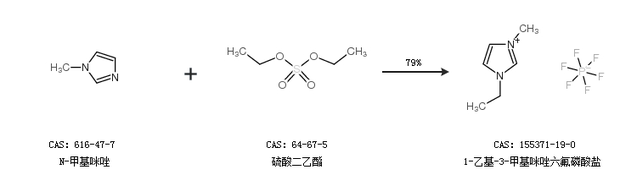2.通过N-甲基咪唑和硫酸二乙酯合成1-乙基-3-甲基咪唑六氟磷酸盐,收率约79%;