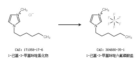 中文别名 1-己基-3-甲基咪唑鎓六氟磷酸盐;六氟磷酸1-已基-3-甲基咪唑鎓;六氟磷酸1-已基-3-甲基咪唑鎓,1-已基-3-甲基咪唑鎓六氟磷酸盐;1-正己基-3-甲基咪唑六氟磷酸盐;