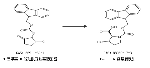 1.通过9-芴甲基-N-琥珀酰亚胺基碳酸酯合成Fmoc-L-4-羟基脯氨酸