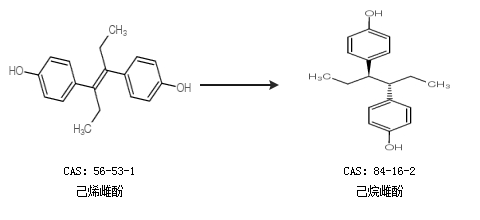 中文别名 4,4ˊ-二羟-Γ,Δ-二苯己烷;4,4''-(1,2-二乙基亚乙基)二苯酚;己雌酚,HEXOESTROL;去氢己烯雌酚;六羟春情素;