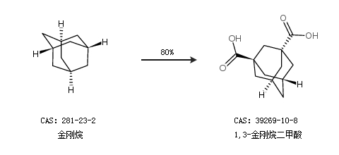1.通过金刚烷合成1,3-金刚烷二甲酸,收率约80%;