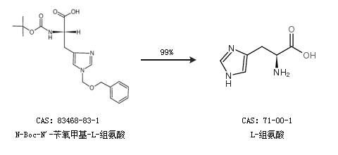 2.通过N-Boc-N''-苄氧甲基-L-组氨酸合成L-组氨酸,收率约99%;