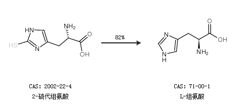 1.通过2-硫代组氨酸合成L-组氨酸,收率约82%;