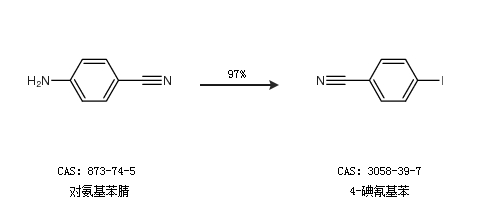 1.通过对氨基苯腈合成4-碘氰基苯,收率约97%;