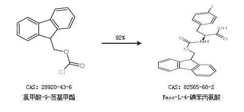 2.通过氯甲酸-9-芴基甲酯合成Fmoc-L-4-碘苯丙氨酸,收率约92%;