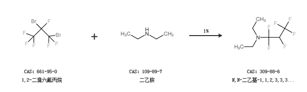 2.通过1,2-二溴六氟丙烷和二乙胺合成N,N-二乙基-1,1,2,3,3,3-六氟丙胺,收率约1%;