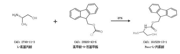 2.通过L-氨基丙醇和氯甲酸-9-芴基甲酯合成Fmoc-L-丙氨醇,收率约87%;