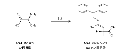 2.通过L-丙氨酸合成Fmoc-L-丙氨酸,收率约91%;
