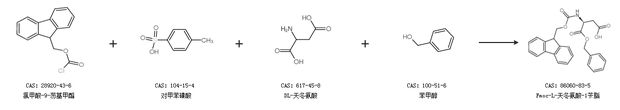 2.通过氯甲酸-9-芴基甲酯、对甲苯磺酸、DL-天冬氨酸和苯甲醇合成Fmoc-L-天冬氨酸-1苄脂