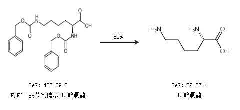 2.通过N,N’-双苄氧羰基-L-赖氨酸合成L-赖氨酸,收率约89%;