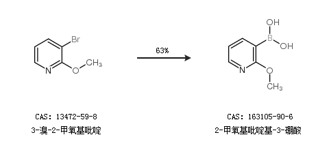 2.通过3-溴-2-甲氧基吡啶合成2-甲氧基吡啶基-3-硼酸,收率约63%;