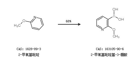 1.通过2-甲氧基吡啶合成2-甲氧基吡啶基-3-硼酸,收率约68%;