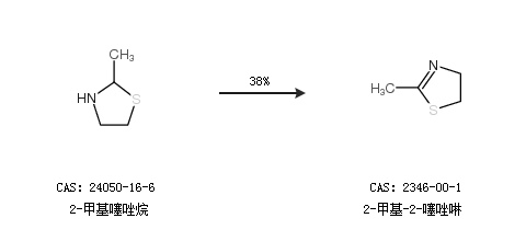 1.通过2-甲基噻唑烷合成2-甲基-2-噻唑啉,收率约38%;