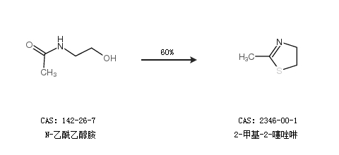 2.通过N-乙酰乙醇胺合成2-甲基-2-噻唑啉,收率约60%;