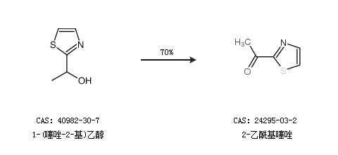 2.通过1-(噻唑-2-基)乙醇合成2-乙酰基噻唑,收率约70%;