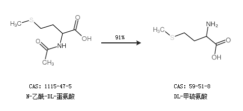2.通过N-乙酰-DL-蛋氨酸合成DL-甲硫氨酸,收率约91%;