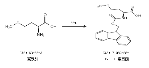 1.通过L-蛋氨酸合成Fmoc-L-蛋氨酸,收率约85%;