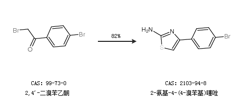 2.通过2,4''-二溴苯乙酮合成2-氨基-4-(4-溴苯基)噻唑,收率约82%;