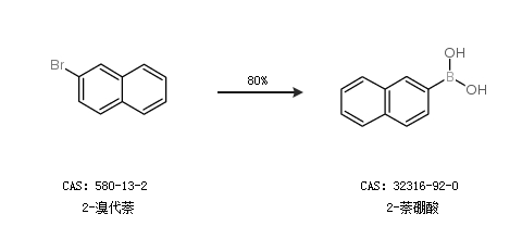 1.通过2-溴代萘合成2-萘硼酸,收率约80%;