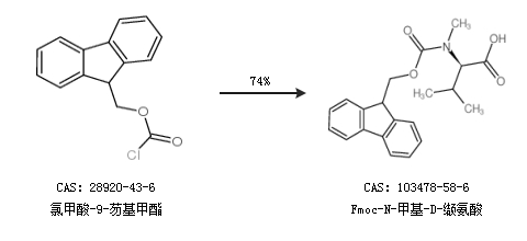 1.通过氯甲酸-9-芴基甲酯合成Fmoc-N-甲基-D-缬氨酸,收率约74%;