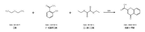 2.通过乙醚、2''-羟基苯乙酮和乙二酸二乙酯合成色酮-2-甲酸,收率约82%;