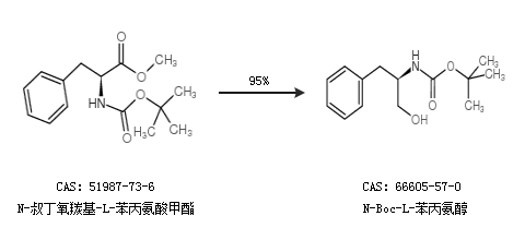 2.通过N-叔丁氧羰基-L-苯丙氨酸甲酯合成N-Boc-L-苯丙氨醇,收率约95%;