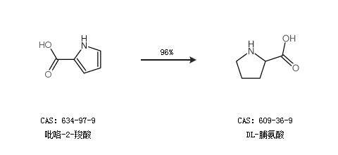 1.通过吡咯-2-羧酸合成DL-脯氨酸,收率约96%;