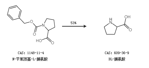 2.通过N-苄氧羰基-L-脯氨酸合成DL-脯氨酸,收率约53%;