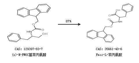 2.通过(s)-N-FMOC基苯丙氨醇合成Fmoc-L-苯丙氨酸,收率约87%;