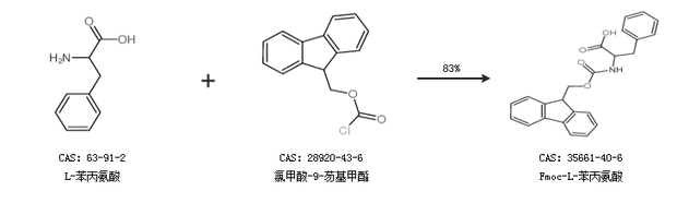 1.通过L-苯丙氨酸和氯甲酸-9-芴基甲酯合成Fmoc-L-苯丙氨酸,收率约83%;