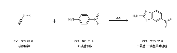 1.通过硫氰酸钾和4-硝基苯胺合成2-氨基-6-硝基苯并噻唑,收率约96%;