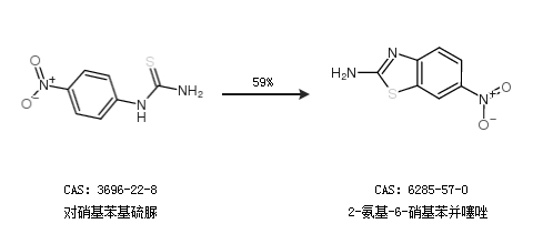 2.通过对硝基苯基硫脲合成2-氨基-6-硝基苯并噻唑,收率约59%;